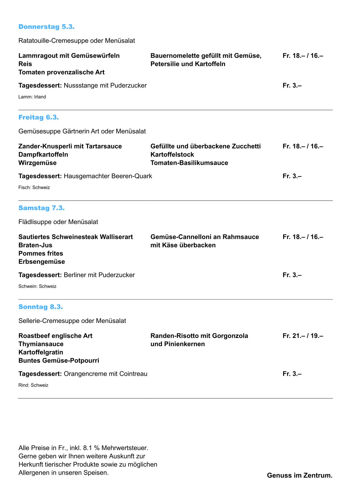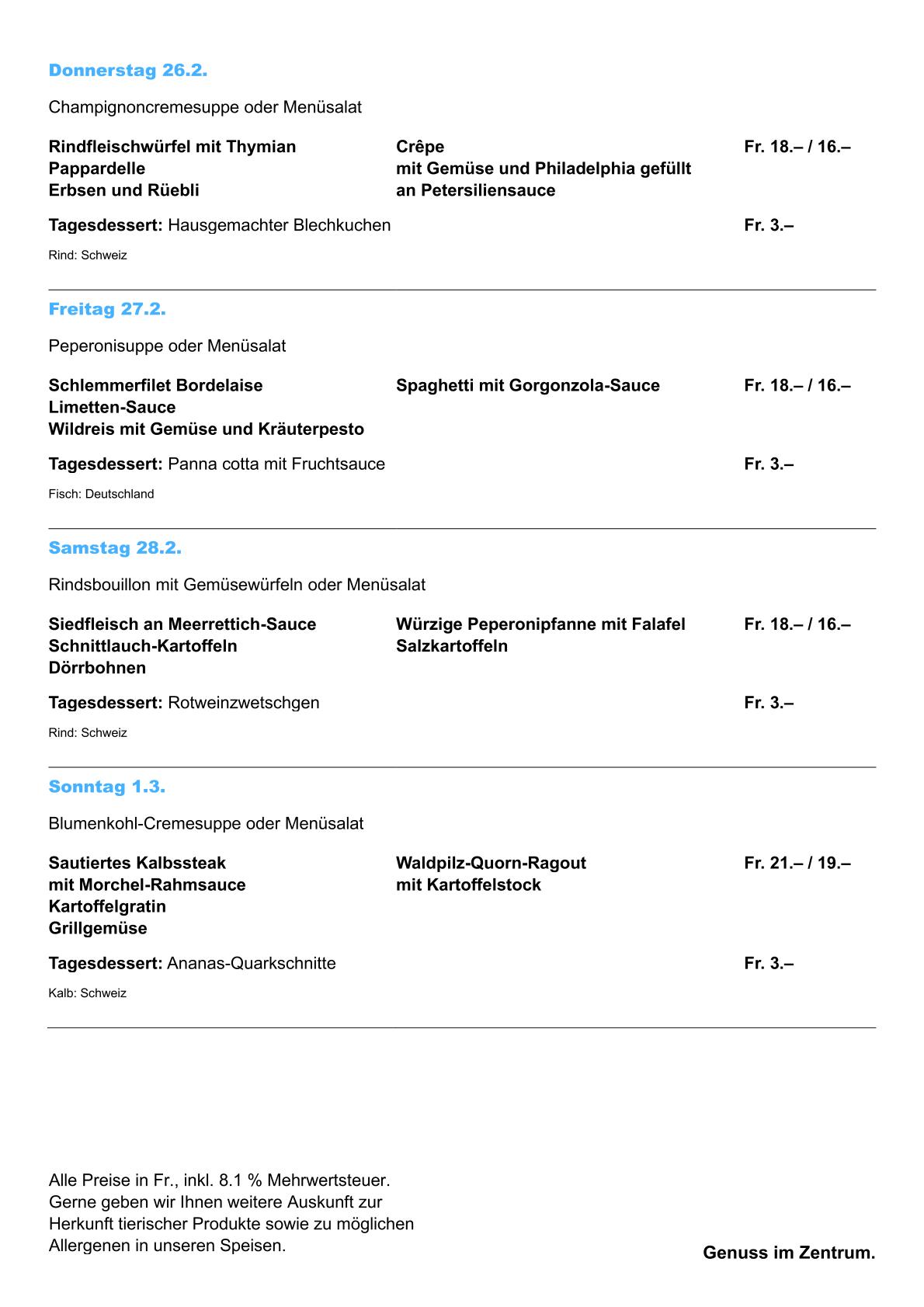 Wochenmenue auf Offizielle Webseite